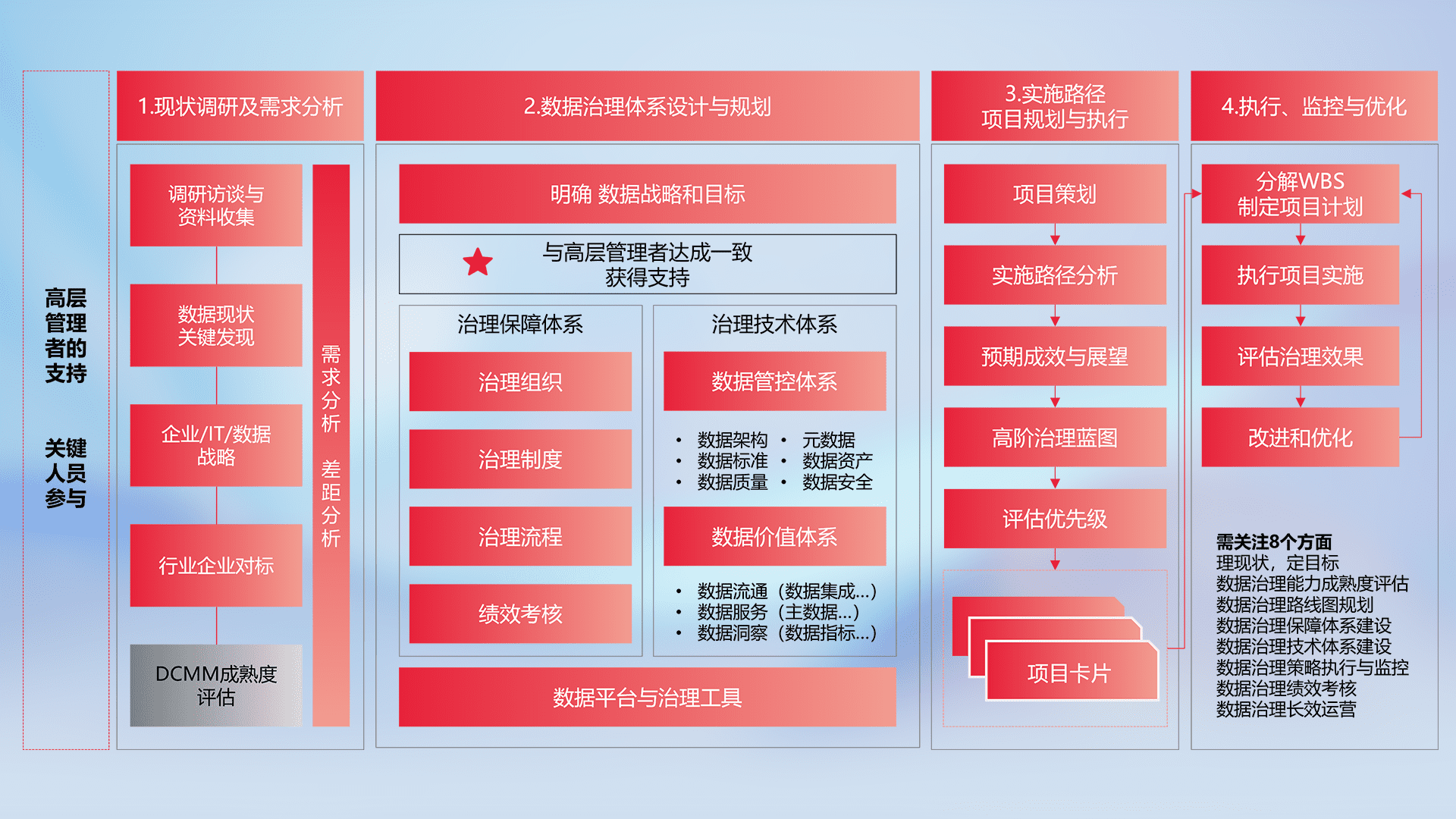 以高阶专业视角定制解决方案,,结合行业最佳实践,,,,覆盖数据全生命周期管理,,确保策略落地执行,,助力企业构建高效、、、可持续的数据管理体系,,,,推动数字化转型。。